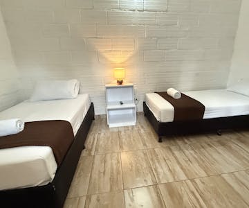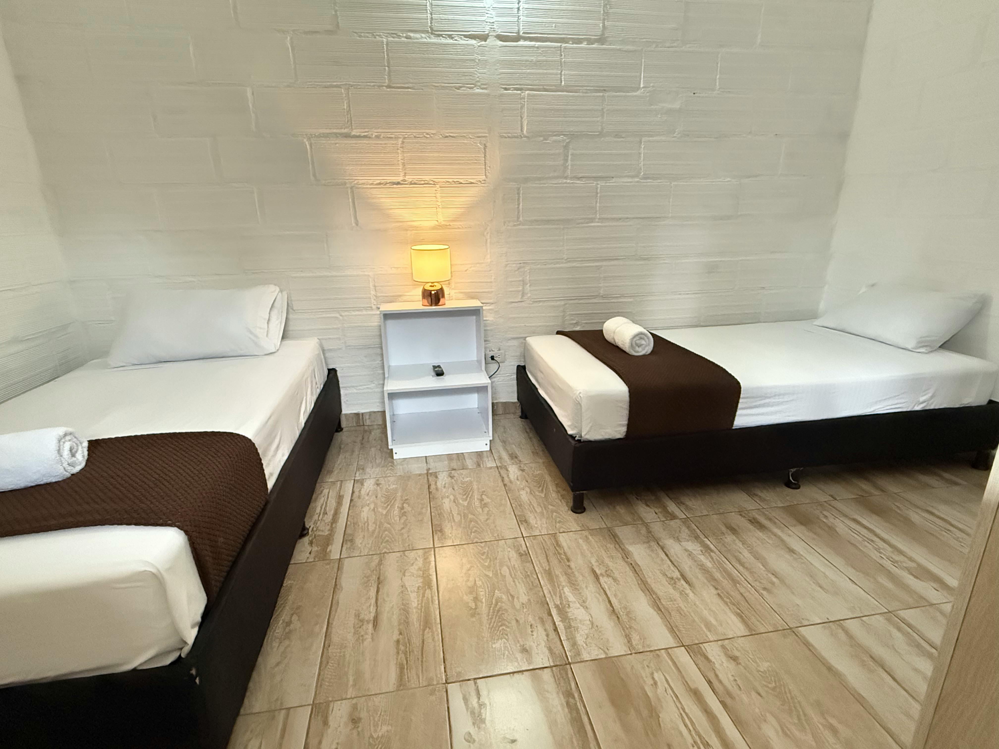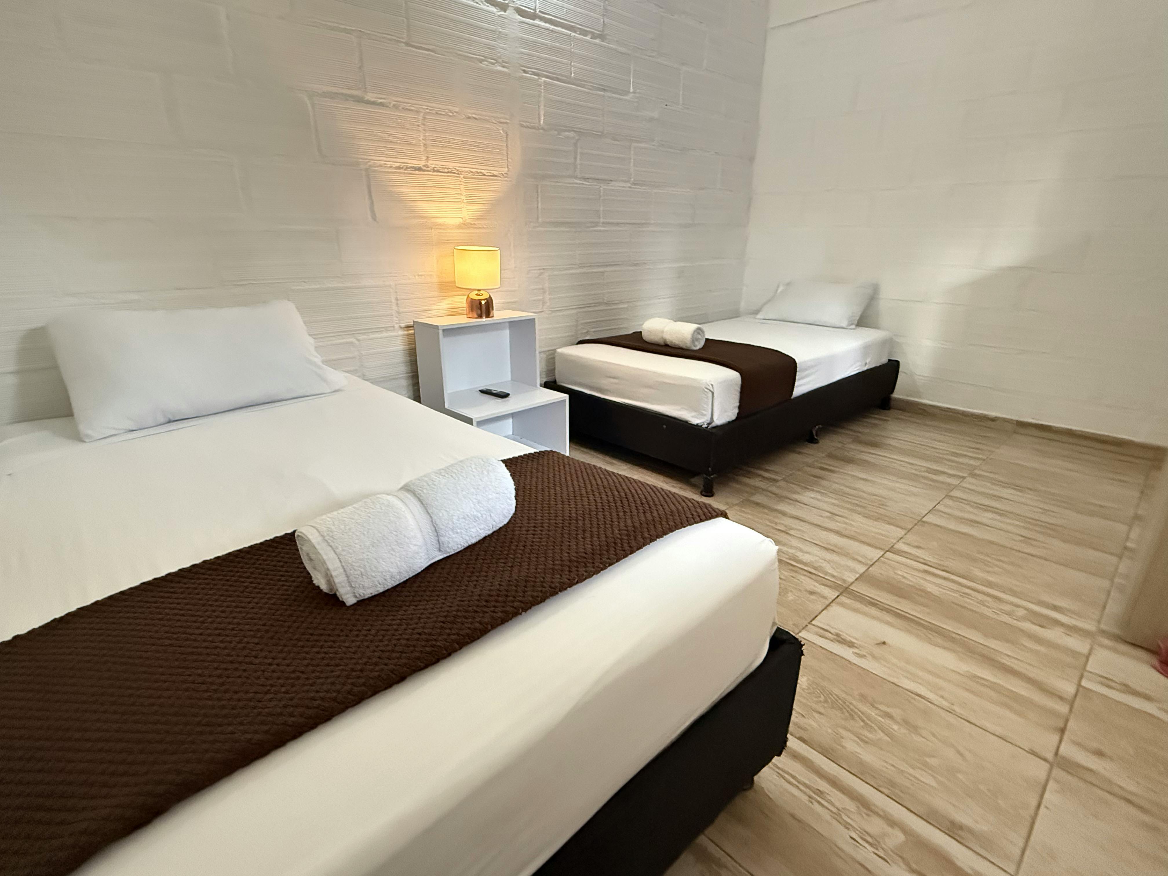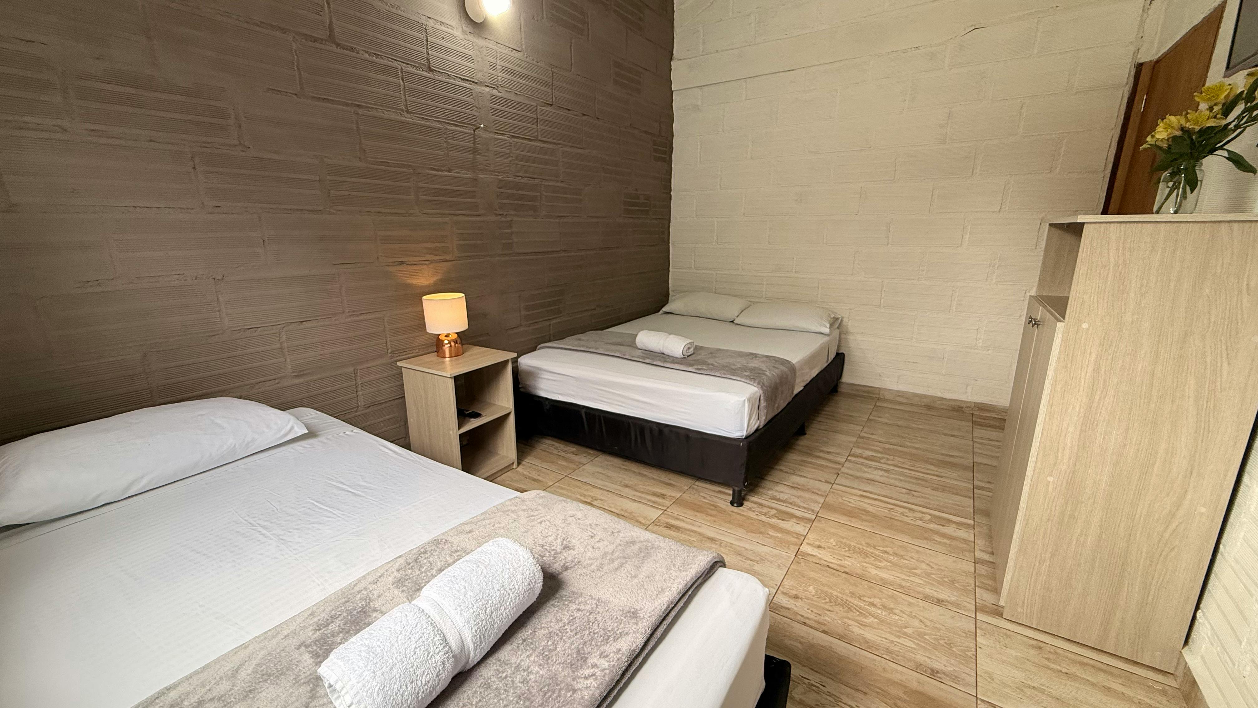 The Standard Triple Room is designed to provide comfort and practicality, perfect for small families or groups of friends. It features a double bed and a single bed, a fully equipped private bathroom, and a Smart TV so you can enjoy your favorite content during your stay.